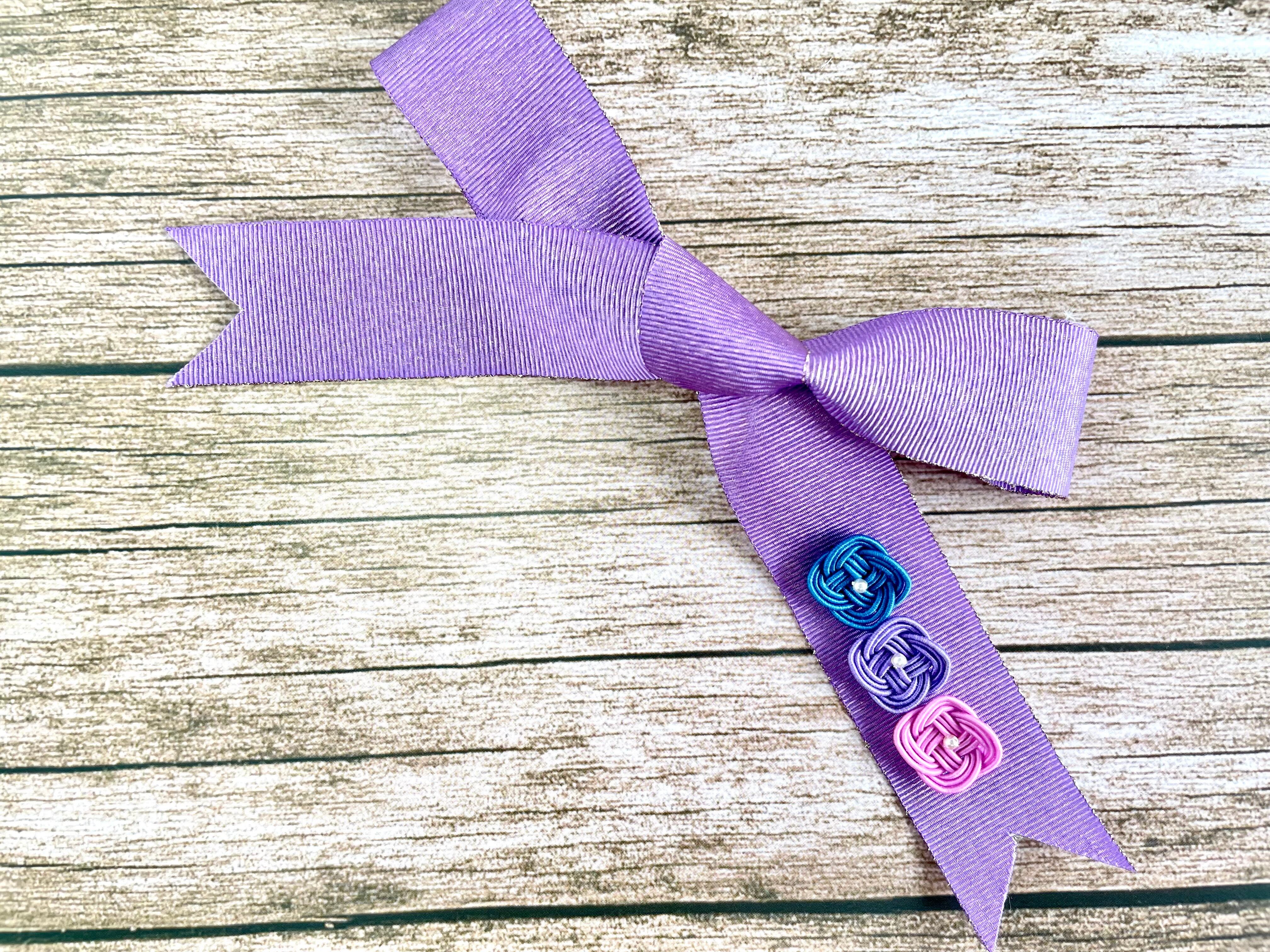 水引細工で紫陽花の色の移り変わりを青、紫、ピンクの3色で表しました。