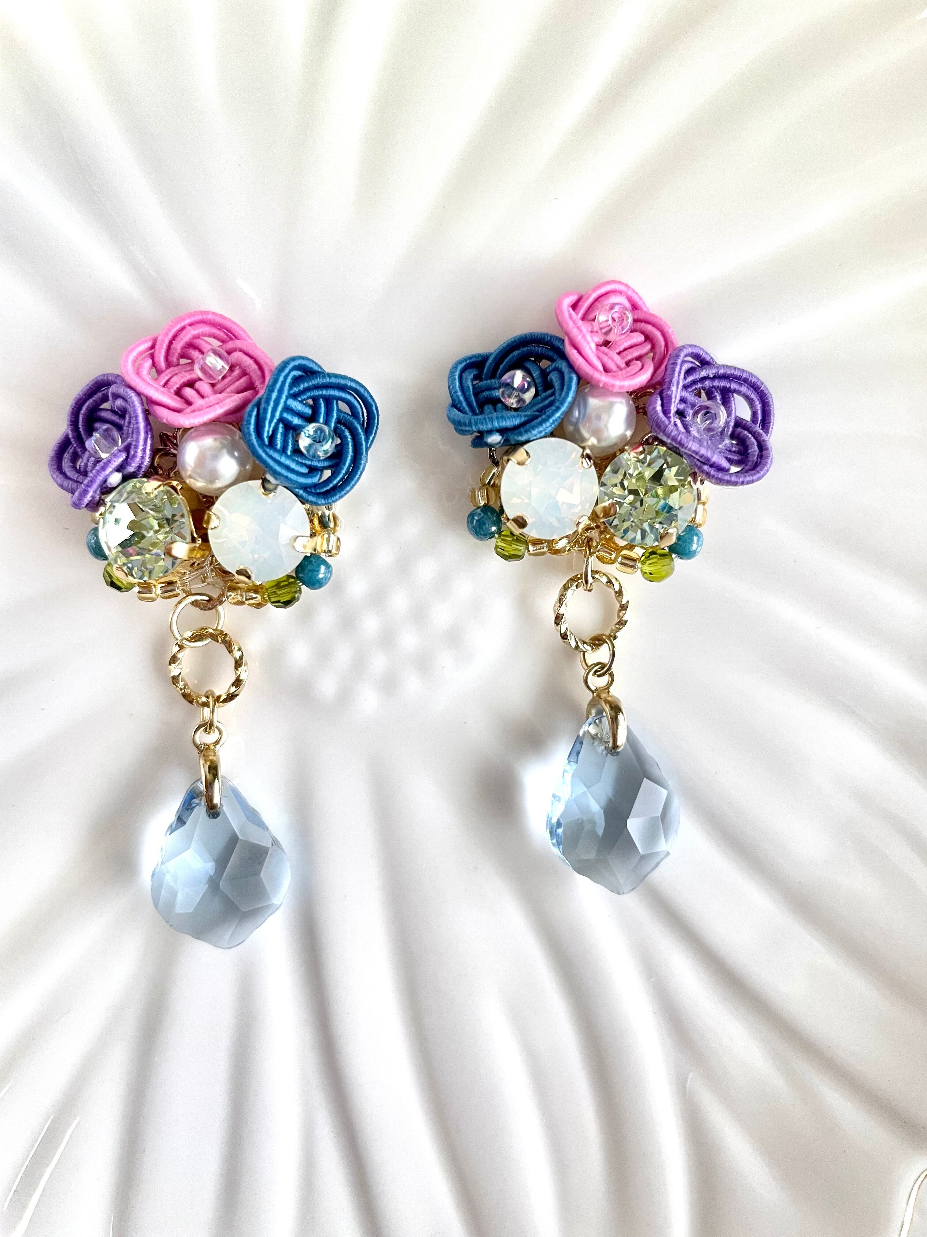 紫陽花とクリスタルビジューのブーケピアス イヤリング