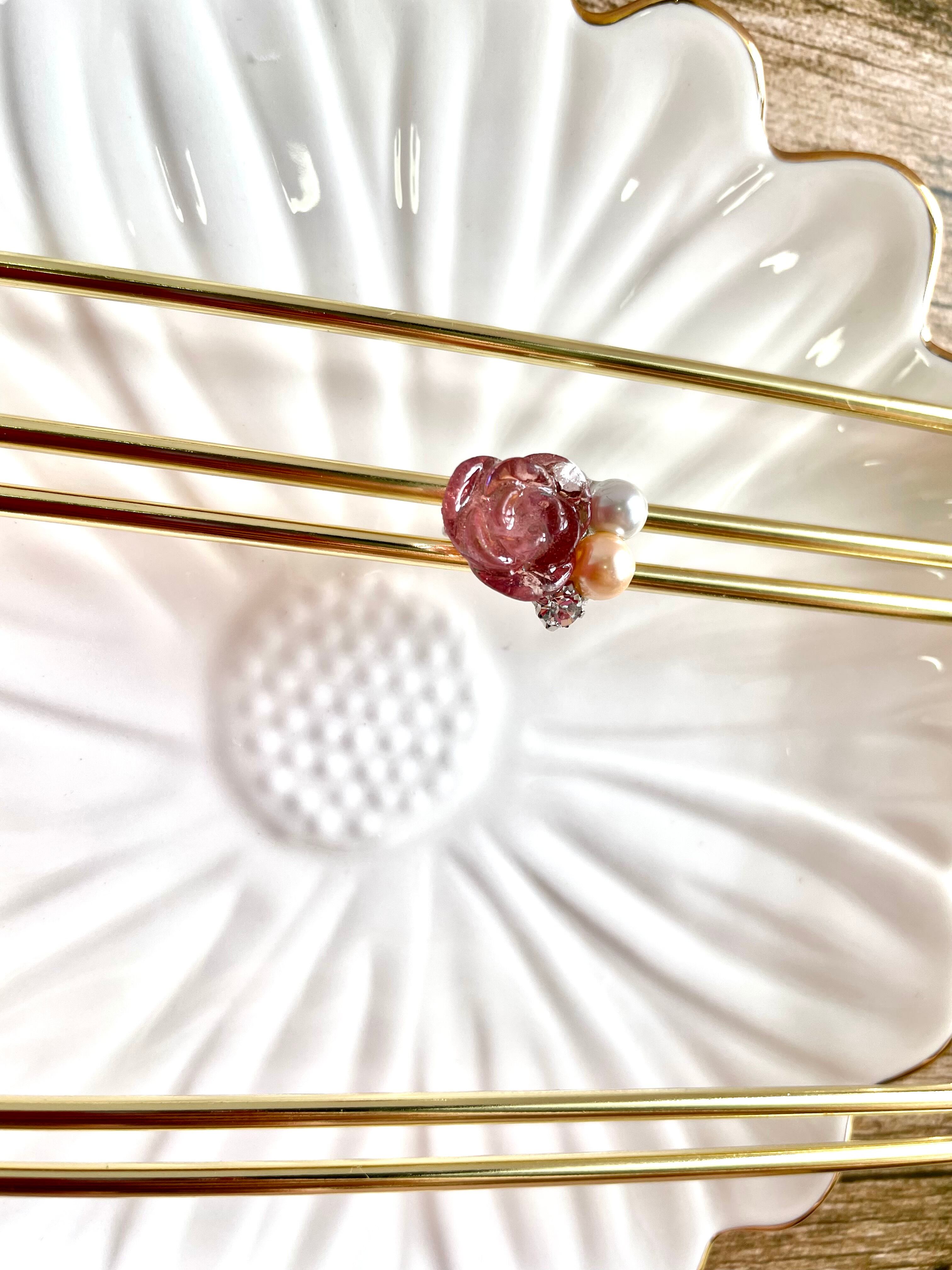 パールとクリスタルガラスをあしらい、可愛らしくまとめました。