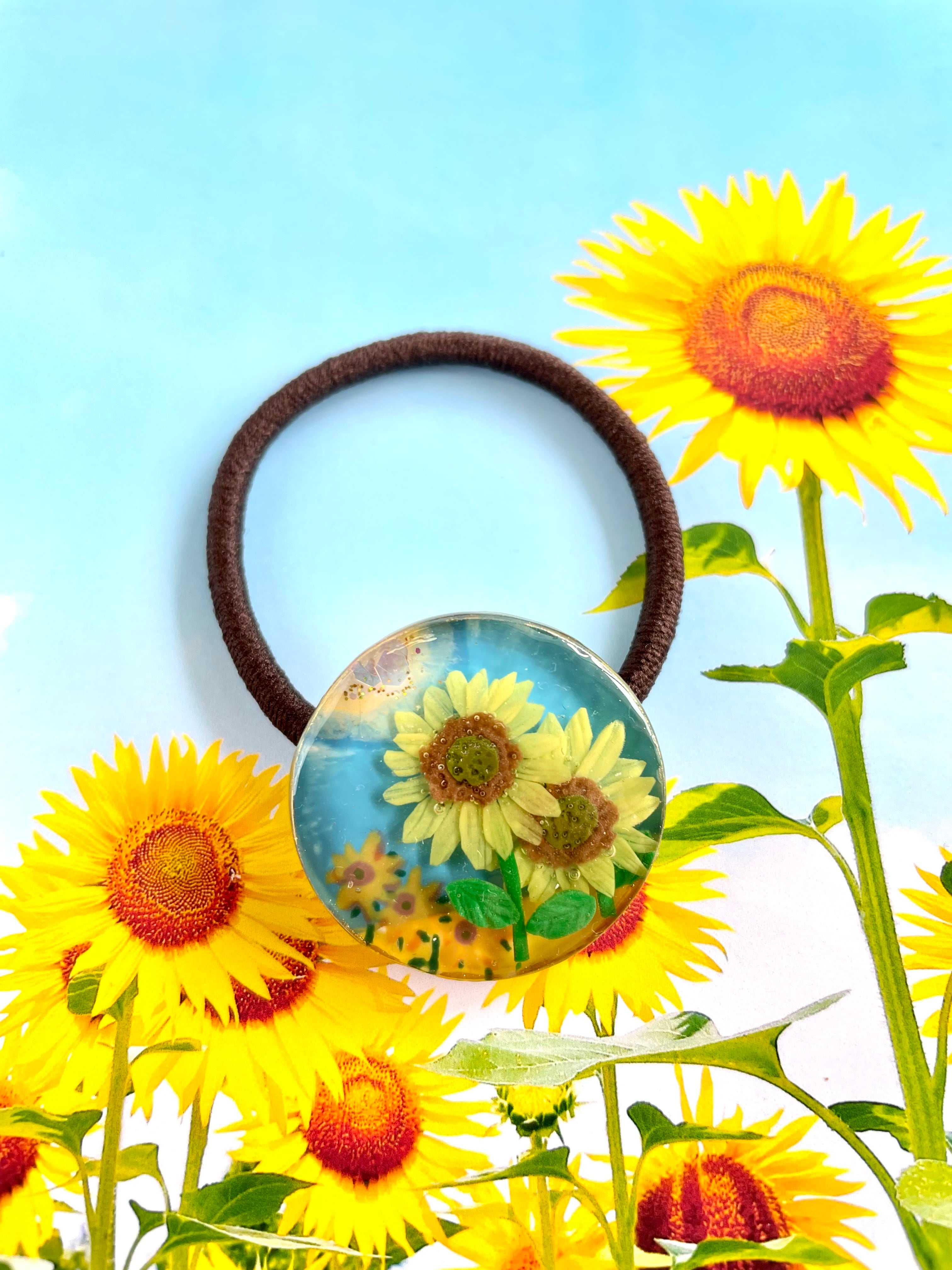 希望溢れる未来を見つめる向日葵、とっても素敵なヘアゴムです。