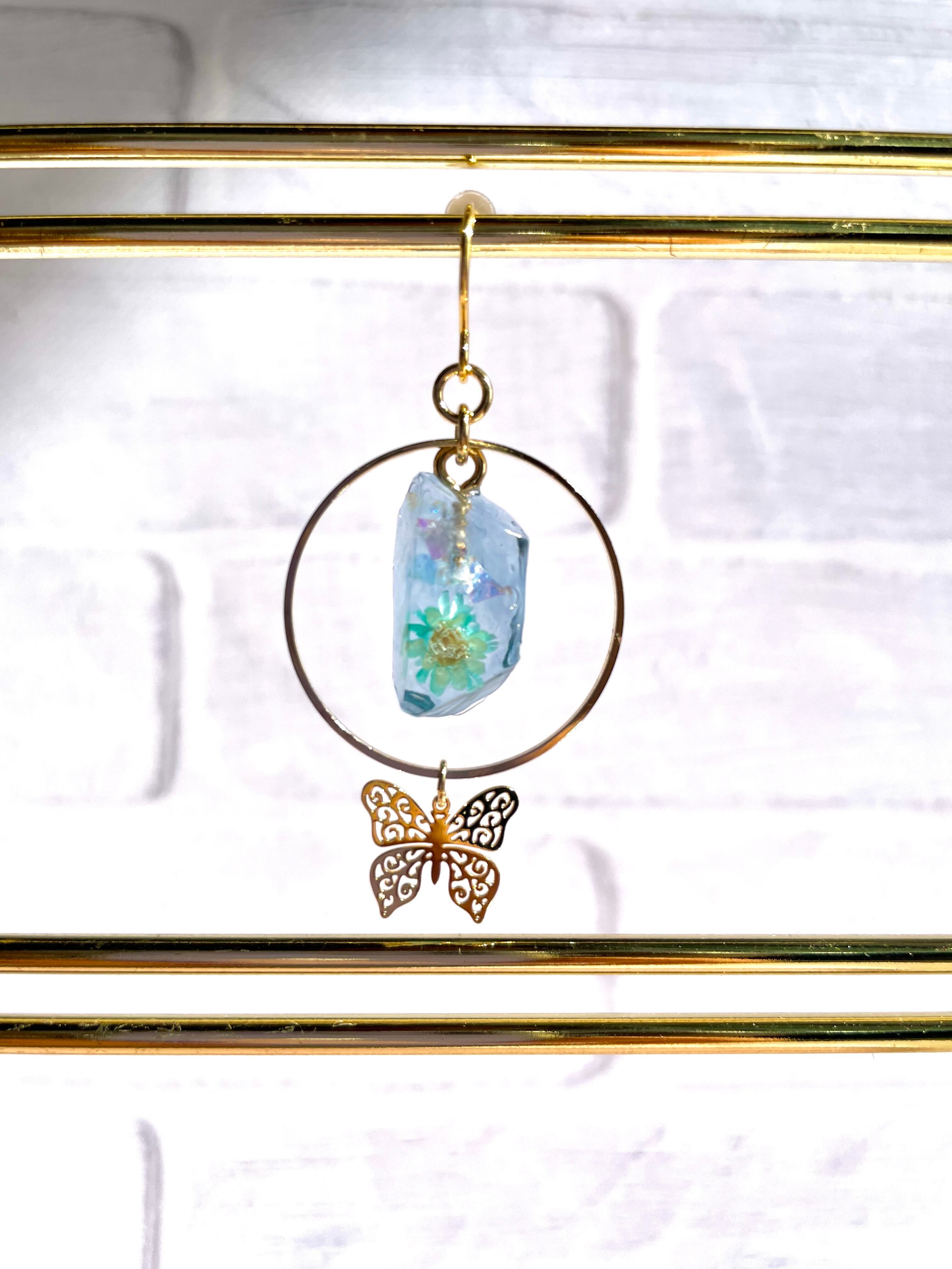 • ブルーレジンの中に閉じ込められた可憐な水色のお花